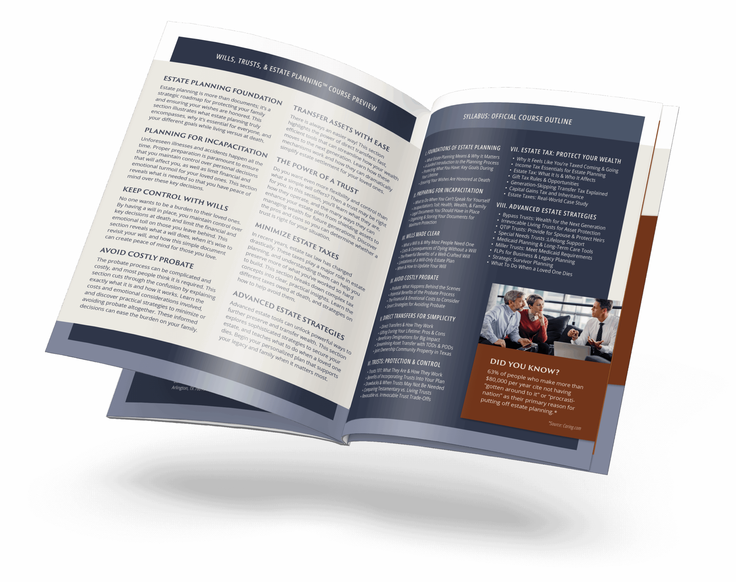 This course is designed for anyone looking to protect your loved ones and preserve your legacy as intended. We cover expert strategies for minimizing taxes, avoiding probate, organizing documents, and preparing for incapacity.
